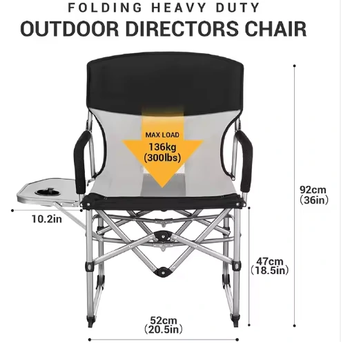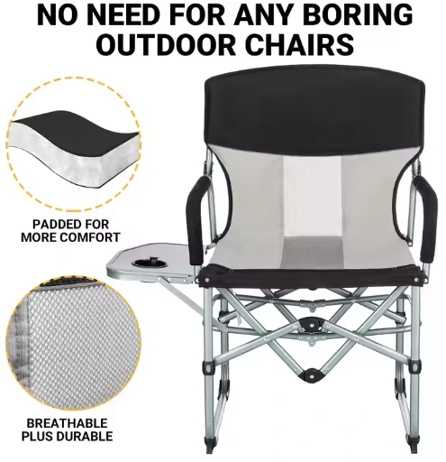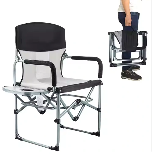 BBQ কেম্পিং পিকনিক চেয়াৰ,ফোল্ডিং কেম্পিং চেয়াৰ, হেভি ডিউটি পৰ্টেবল ডাইৰেক্টৰছ চেয়াৰৰ বাবে পাৰ্শ্ব টেবুল মেছ বেক কম্পেক্ট ষ্টাইলৰ সৈতে বহিঃজগতৰ বাবে