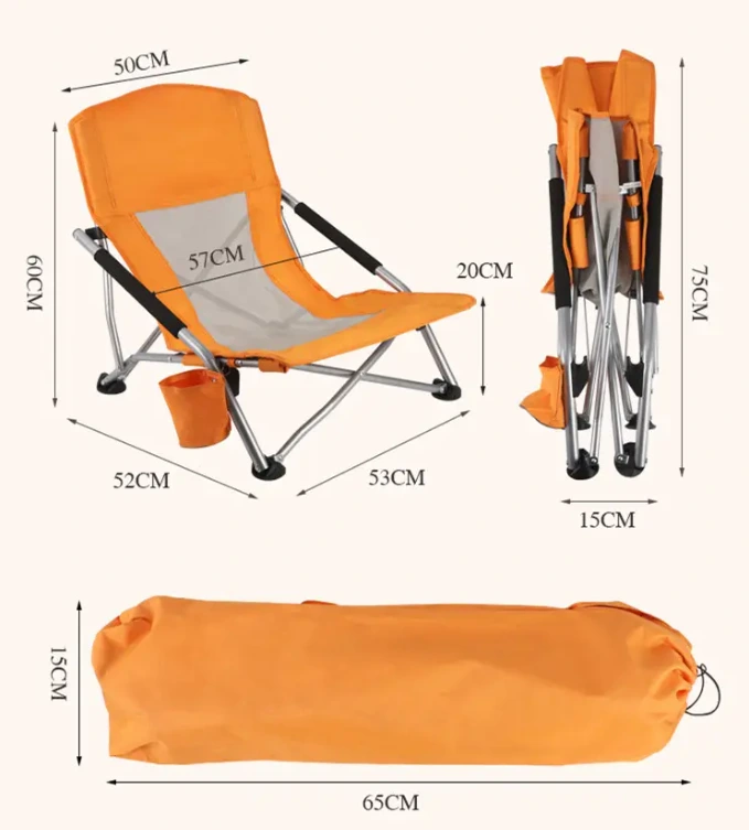 'ফল্ডিং বিচ সেট', প্ৰাপ্তবয়স্কৰ বাবে কম বিচ চেয়াৰ কাপ হোল্ডাৰ আৰু কেৰী বেগৰ সৈতে পৰ্টেবল বালি চেয়াৰ ভাঁজ কৰা। ধাতুৰ বাহুত বাহুৰ কুশ্বন আছে যাতে আপুনি বাহু দুটা আৰামদায়কভাৱে জিৰণি দিব পাৰে।