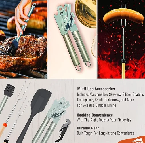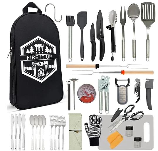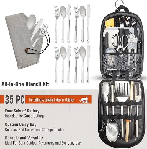 এই 35 পিচি কেম্পিং ৰন্ধন বাচন-বৰ্তন চেট আপোনাৰ বাহিৰৰ ৰন্ধন প্ৰয়োজনৰ বাবে এটা সম্পূৰ্ণ সমাধান. ইয়াত এটা কেম্পিং কিচেন চেট আৰু কেম্পিং বাচন-বৰ্তন ৰন্ধন চেট, সকলোবোৰ অতিৰিক্ত কম্পাৰ্টমেণ্ট আৰু দুটা পিছৰ পকেট থকা কাষ্টম বেগত পৰিপাটিকৈ ভৰোৱা। চেটটো আপোনাৰ সকলো কেম্পিং ৰন্ধন প্ৰয়োজনীয় বস্তুৰ যোগান ধৰিবলৈ ডিজাইন কৰা হৈছে, যাৰ ফলত ই আপোনাৰ কেম্পিং গিয়াৰত এক অপৰিহাৰ্য সংযোজন