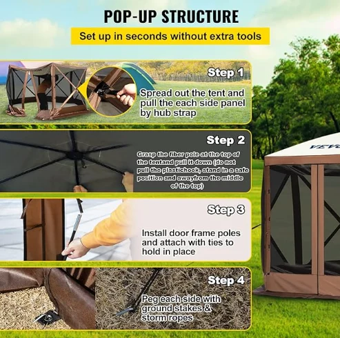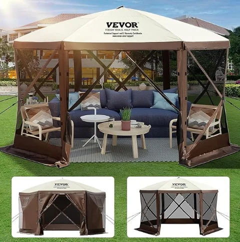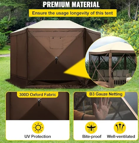 ৰেইন প্ৰুফ পাৰ্গোলা কেম্পিং কেনপি টেণ্ট,কেম্পিং গেজেবো টেণ্ট ৩০০ডি অক্সফৰ্ড ফেব্ৰিক আৰু বি৩ গজ নেটিংেৰে তৈয়াৰ কৰা হৈছে। ই হৈছে IPX3 ৱাটাৰপ্ৰুফ, কামোৰ-প্ৰুফ, আৰু UV-প্ৰুফ। 12' x 12' গেজেবো কেন'পিয়ে বাহিৰৰ আশ্ৰয়স্থল ব্যৱহাৰৰ বাবে এক বৃহৎ স্থান প্ৰদান কৰে।